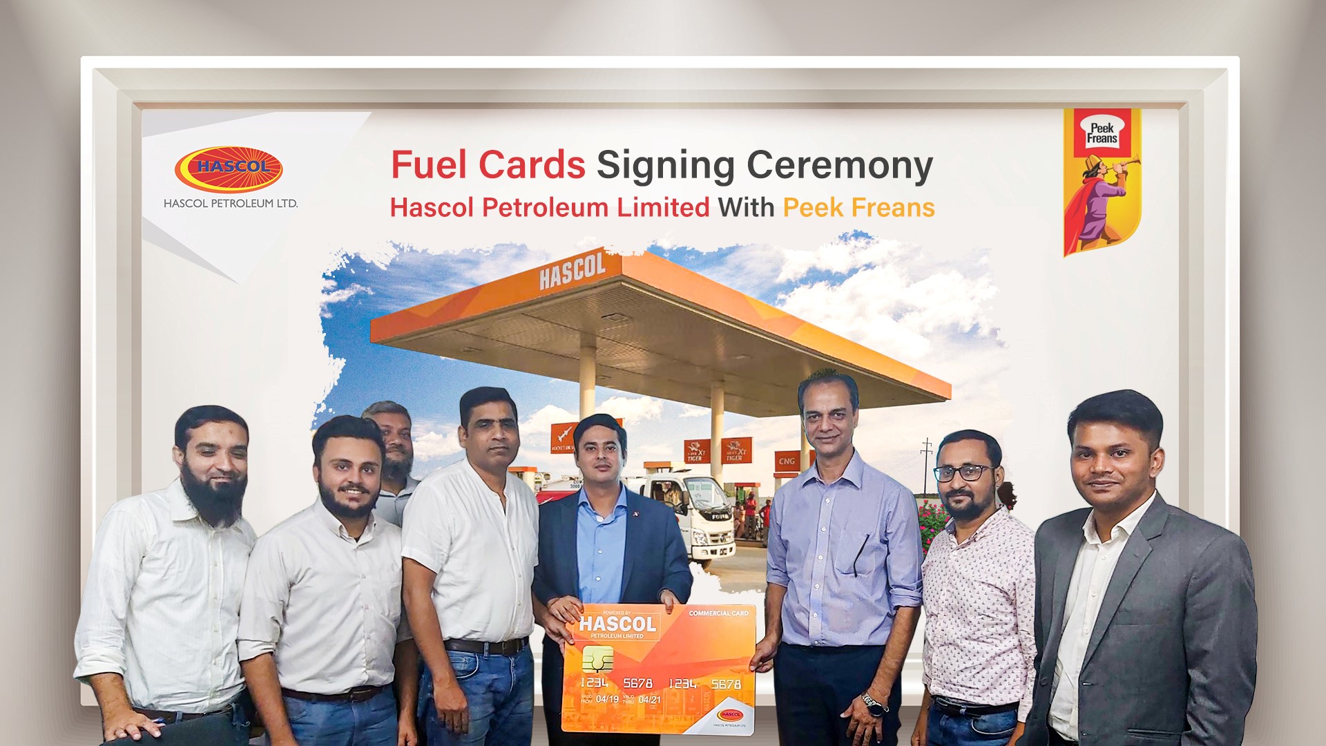 Our dynamic Fuel Cards Manager, Mr. Sohaib Bokhari , GM Logistics, Mr. Masud and Fuel Cards Associate, Mr. Haider at the Fuel Cards signing ceremony between Hascol Petroleum Limited and Peak Freans.